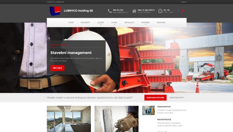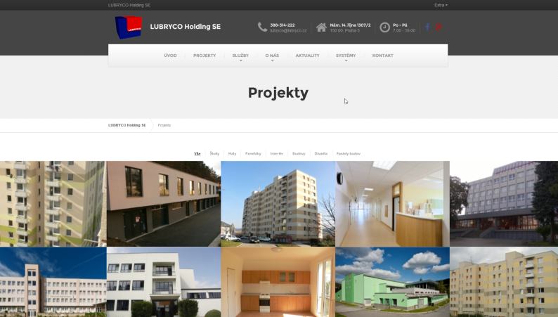 Webové stránky vytvořené pomocí redakčního systému wordpress pro firmu Lubryco Holding SE působící v Prachaticích se sídlem v Praze. Stavební a obchodní společnost LUBRYCO Holding SE se zaměřuje především na hlavní stavební výrobu. Společnost provádí formou kompletních dodávek stavby občanské, bytové, inženýrské, průmyslové dále pak rekonstrukce objektů s důrazem na využití moderních tepelně-izolačních systémů.